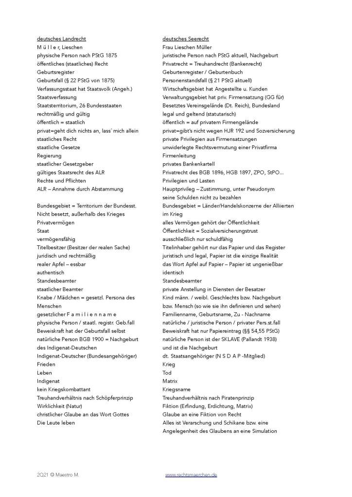 Rechtsverhältnisse geltend ab dem 28.10.1918 – gespiegeltes Seehandelsrecht. Rechteträger: -fehlt- ! Der rechtlose Vertreter ist der autorisierte Repräsentant [A.¸R.], ein erdichteter Law Merchant nach Federal Reserve Act 1913; er haftet mit seiner Unterschrift, steht unter Vormundschaft im Kriegsrecht und befindet sich an einem Scheinort bzw. einer Fiktion im Ausland. Öffentliches gesetzliches Recht existiert nicht; das herrschende Statutenrecht ist privates Verwaltungsrecht.]